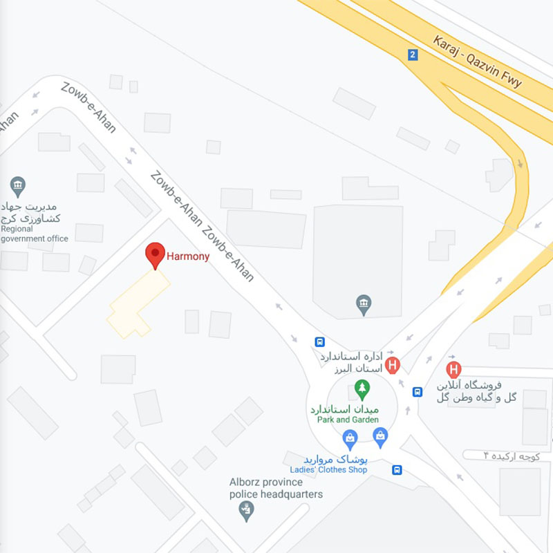 دفتر و شعبه مرکزی :: مجموعه هارمونیک، جنب اتوبــان تهران – کرج، میدان استاندارد ایران. ساعات کاری : 21:00-10:00 فقط در تعطیلات سوگواری رسمی تعطیل میباشد ..