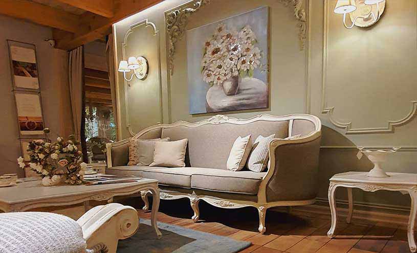 در فریم اصلی این مبل از چوب‌های راش گرجستانی و چوب کاج استفاده شده است که بخش‌هایی از آن  به وسیله دستگاه‌های CNC فرم گرفته، سپس ظریف‌کاری نهایی بوسیله دست استادکاران ماهر شکل نهایی را به خود می‌گیرد.